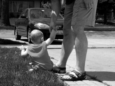 Since the Great Fall from the changing table some seven months ago, I’ve learned that my brother’s advice is more right than wrong. The hard part isn’t watching Ben get hurt (I’m used to that), it’s restraining myself from making a big deal out of it. So if you pass by a sobbing 14-month-old on the floor in the mall, don’t get mad at the dad with his back turned looking into Victoria’s Secret, he’s just practicing restraint. Sort of.